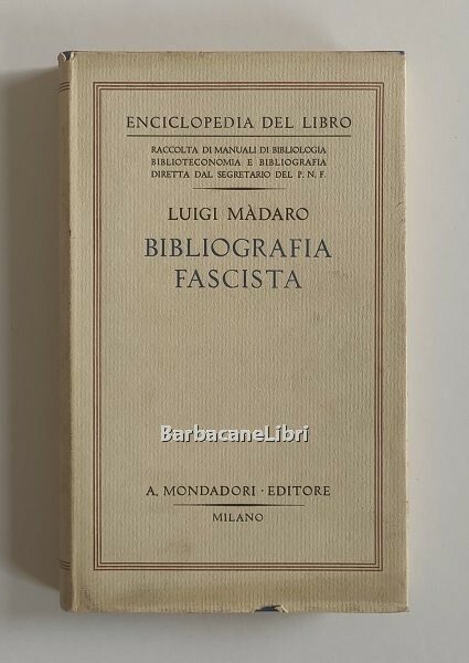 Stato di conservazione: BUONO, sovraccoperta ingiallita con alcuni piccoli strappetti ai margini, fioriture alla sovraccoperta e ai tagli, legatura solida e compatta, nessun segno o scritta all'interno. Il volume appartiene alla collana Enciclopedia del libro. Raccolta di manuali di bibliologia biblioteconomia e bibliografia diretta dal Segretario del P.N.F.
