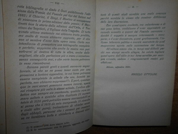 BIBLIOGRAFIA FOSCOLIANA contenente la descrizione di tutte le opere di Ugo Foscolo. con note e commenti