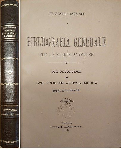 BIBLIOGRAFIA GENERALE per la storia parmense. Con prefazione del Conte Dottor Luigi Sanvitale-Simonetta.