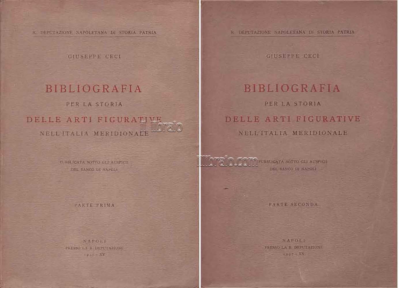 2 voll.; in 8°; pp. VIII, 766 continuate; br. Vol. I: L'arte nell'Italia Meridionale dal Medioevo alla prima metà del secolo XVIII. Vol. II: L'arte nell'Italia Meridionale dalla metà del secolo XVIII ai nostri giorni. Opera rara e fondamentale