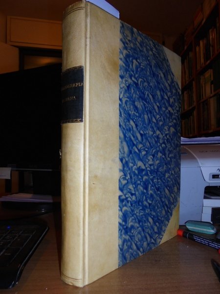 Amati, Girolamo e Autori Vari. Roma, Tipografia Eredi Botta, 1880. BIBLIOGRAFIA Romana. Notizie della vita e delle Opere degli scrittori romani dal Secolo XI fino ai nostri giorni. Vol. 1 (unico pubblicato). In-8°, bella legatura in m-pergamena coeva con grandi angoli, titolo in oro entro tassello al dorso. (X), CLXXIII, (3), 266 pp., 1 f. (errata). Bell' esemplare esente da difetti. Neg. esot. mob. 10