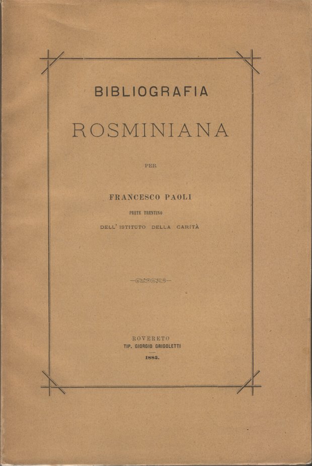 Bibliografia rosminiana per Francesco Paoli prete trentino dell'Istituto della Carità