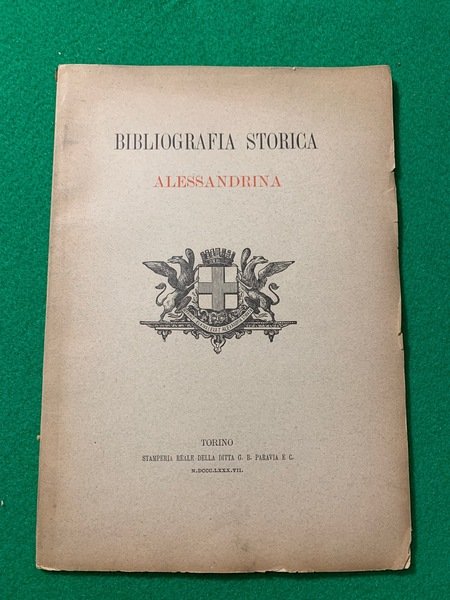 In 4°; 63, (1) pp. Brossura editoriale con titolo e stemma di Alessandria impressi in nero ed oro al piatto anteriore. Importante bibliografia dedicata alla città d'Alessandria. Esemplare in buone-ottime condizioni di conservazione ed ancora a fogli chiusi.