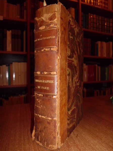 Dufour, Valentin. Paris, A. Laporte, 1882. Bibliographie artistique, historique et littéraire de Paris avant 1789. In - 8°, m. pelle (strappo al dorso in basso e titolo invertito), copertina conservata. (4), viii, 537 pp. con antiporta incisa f.t. Esemplare interfogliato. Uff. mob. 2