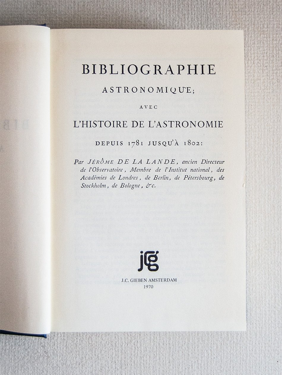 Bibliographie astronomique avec l'histoire de l'Astronomie depuis 1781 jusqu'à 1802.