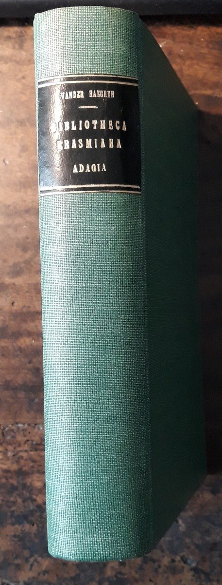 <p>21 cm, rilegatura recente in piena tela, titolo in oro su tassello al dorso, conserva le copertine originali, intonso; p. 579. Table. Liste sommaire des diverses éditions des Adagia. Testo in francese.</p>