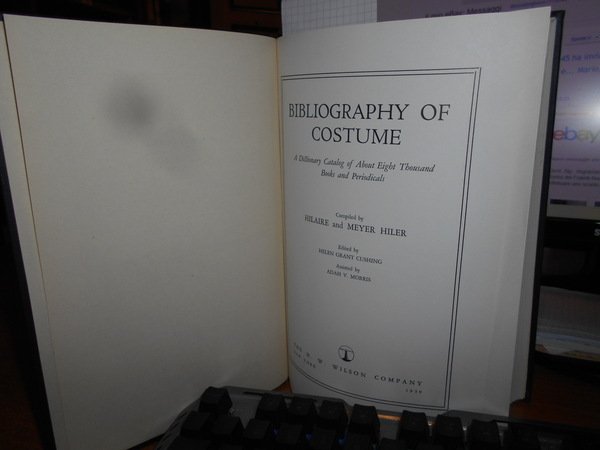 HILAIRE and MEYER HILER. New York, The H. W. Wilson Company, 1939. BIBLIOGRAPHY Of COSTUME. A Dictionary Catalog of About Eight Thousand Books and Periodicals. Edited by Helen Grant Cushing. Assisted by Adah V. Morris. In-8°, tela bleu con titolo in oro al dorso. xxxiv, 911 pp. Perfetto esemplare. Uff. E - II - 5