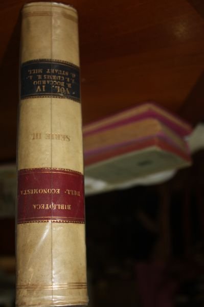 Biblioteca dell`Economista. Serie Terza - Volume Quarto - Boccardo, Del metodo e dei limiti dell'economia politica. Cairnes, Alcuni principi fondamentali d'economia politica, Saggi di economia teoretica ed applicata. Stuart Mill, Saggi sopra alcune questioni non ancora risolute d'economia politica., Boccardo G., Cairnes J. E., Stuart Mill G., Editore: U.T.E., Torino, 1878, , U.T.E., Torino, 1878. In 8, pp. XLVIII+796. Legat. edit. m. pelle, fregi e titolo in oro
