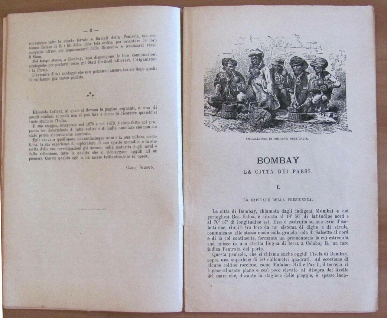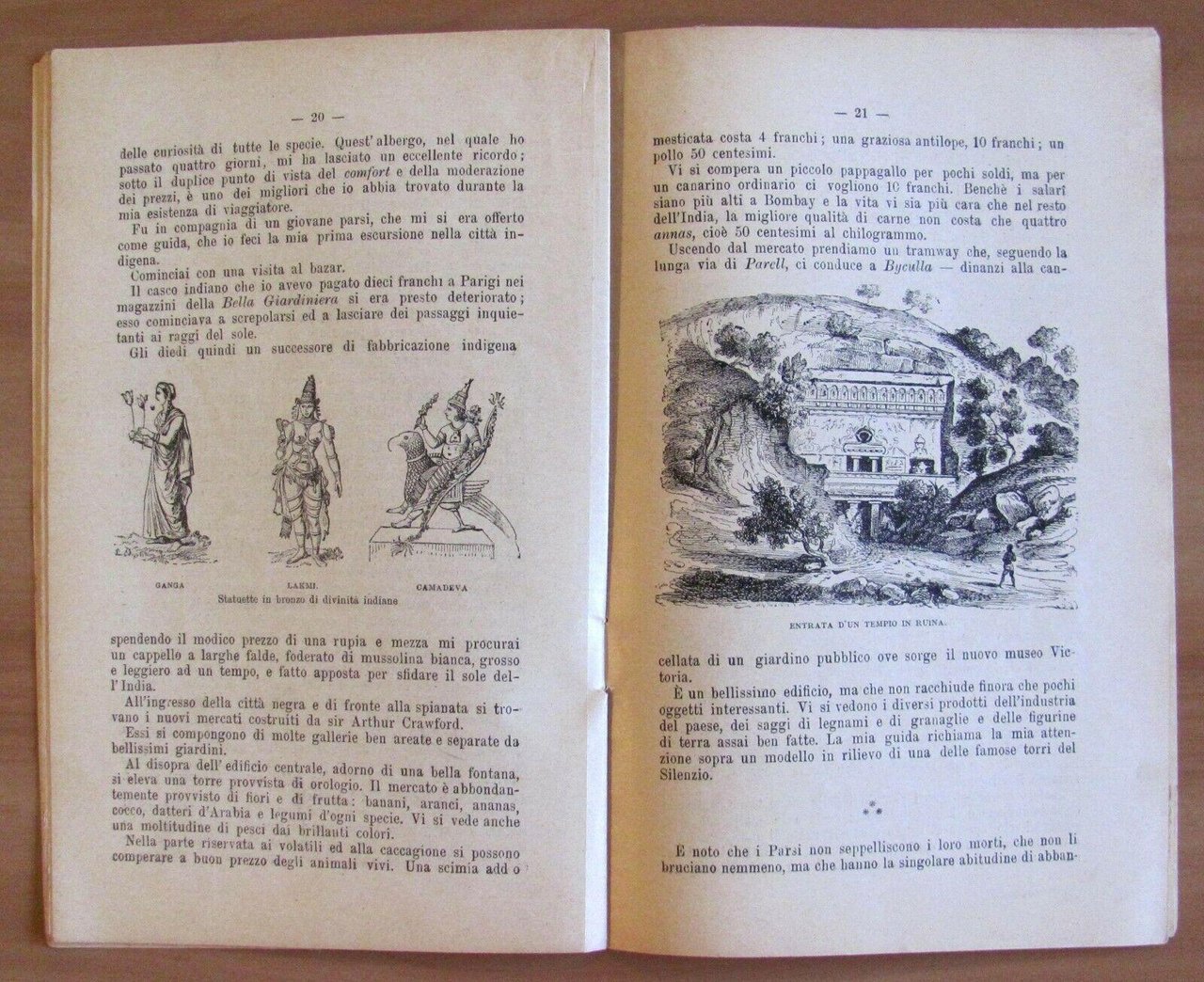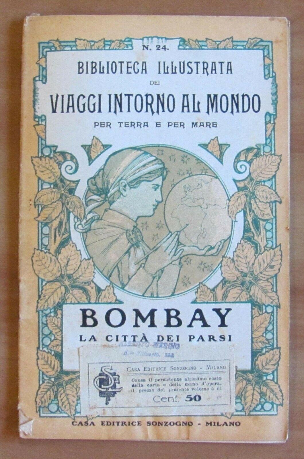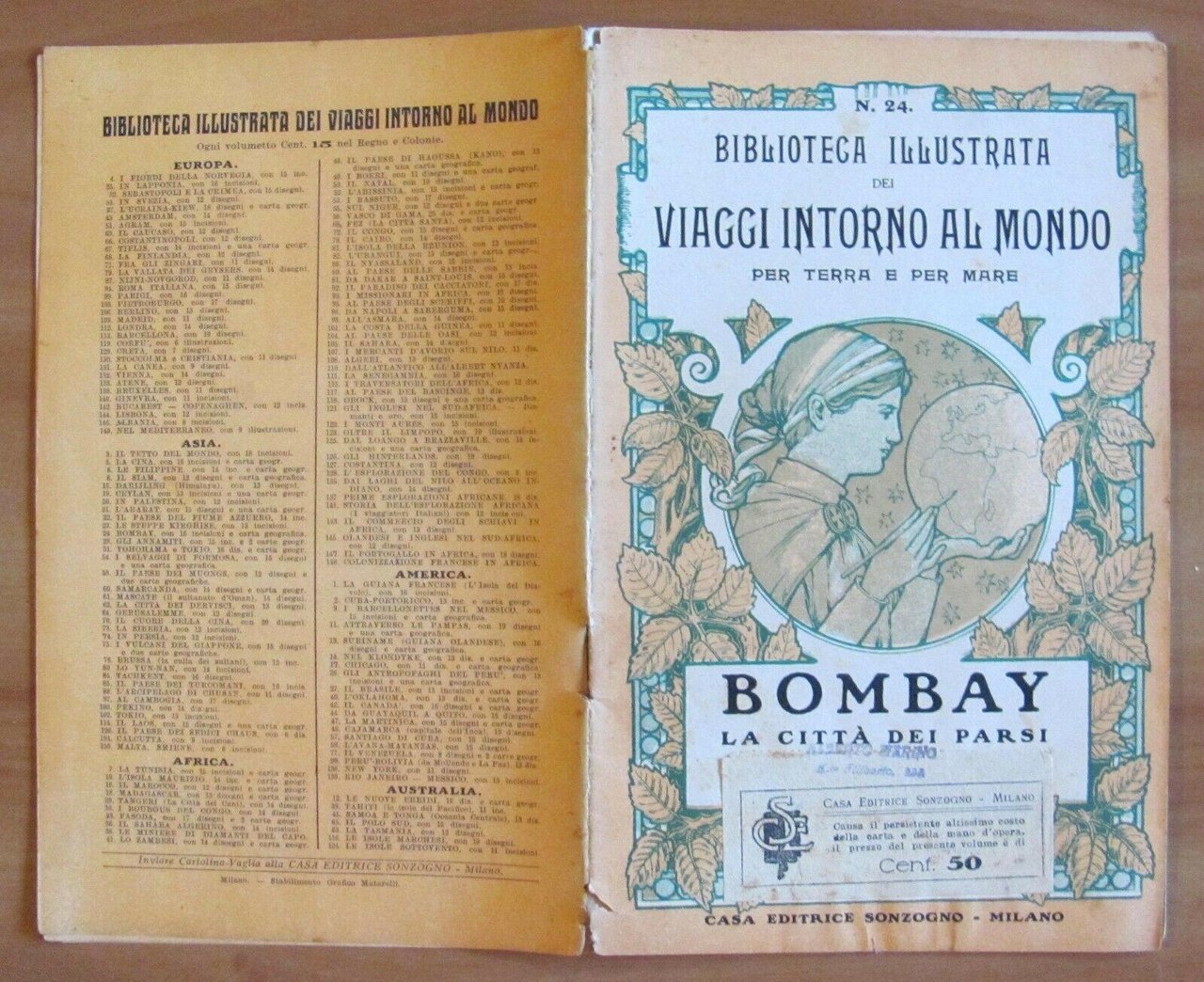 N.24 - Bombay la città dei Parsi. Bella copertina illustrata e molte illustrazioni in b/n n.t. anche a piena pagina. Editrice Sonzogno - Milano, 1899. Brossura editoriale con piccolissima usura in basso al dorso. 14x22; pp.32. Raro, Buonissimo stato. ,