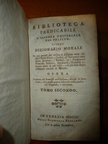 BIBLIOTECA PREDICABILE E SCIENZA UNIVERSALE DEL PULPITO OVVERO DIZIONARIO MORALE