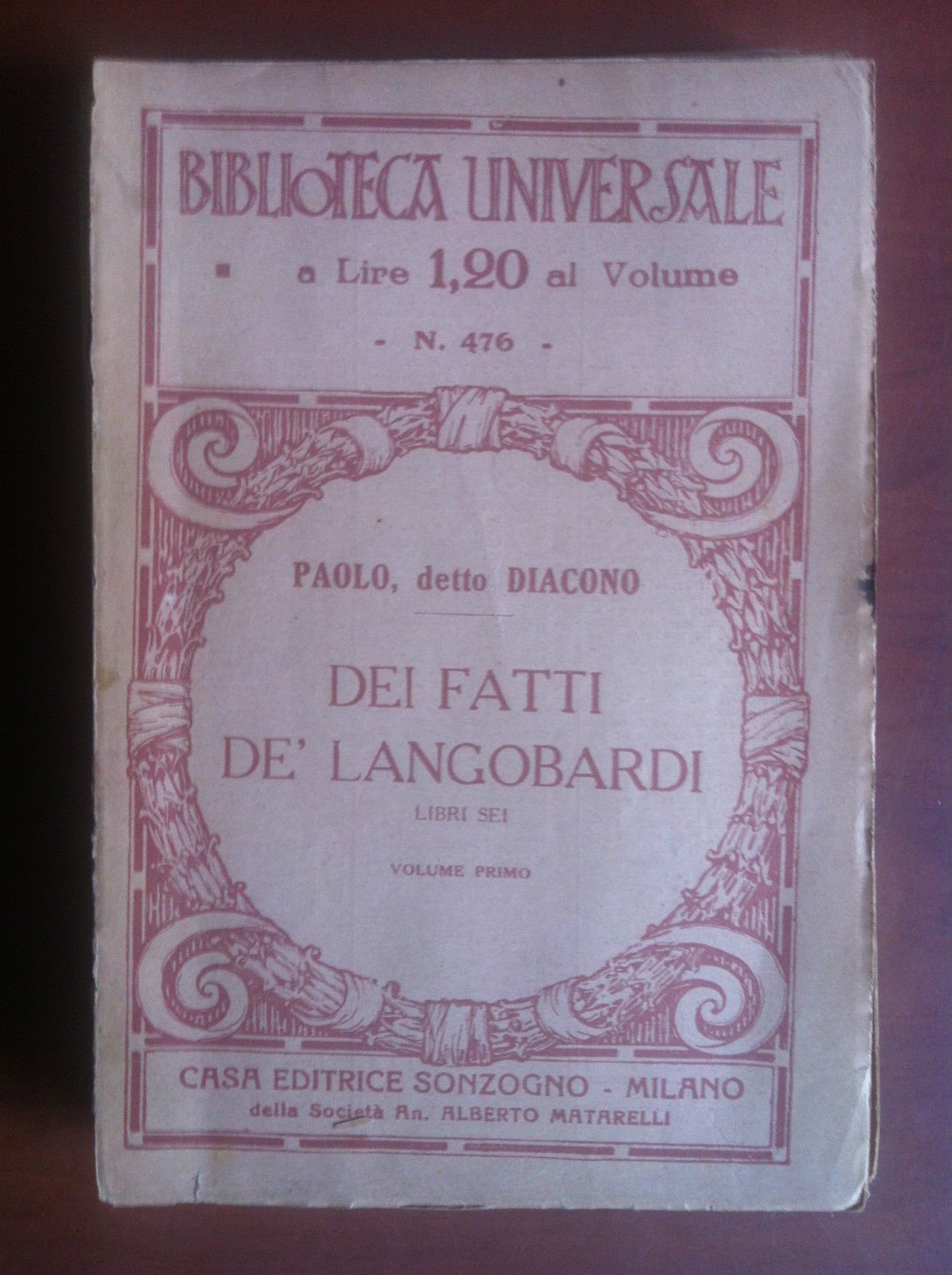 BIBLIOTECA UNIVERSALE n^ 476DEI FATTI DE' LONGOBARDIPaolo, detto DiaconoLibri sei Volume primoCasa Editrice Sonzogno - Milano 1927102 pagine - formato 11,5x17,5 cmin buone condizioni  (56 g)E9016