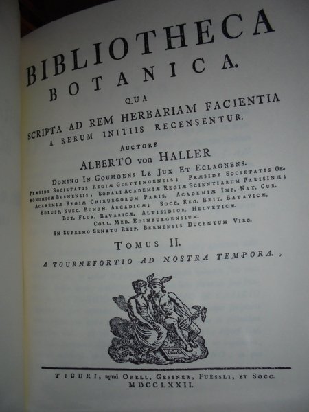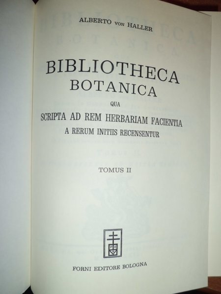 2 VOLUMI IN-8° GR., TELA EDIT. COME NUOVI. XVI, 654; (IV), 785; 57 PP. (INDEX EMENDATUA, BERNAE, 1908). "THIS WAS THE FIRST OF THE SEVERAL BIBLIOGRAPHIES COMPILED BY HALLER, ONE OF THE GREATEST FIGURES IN THE HISTORY OF MEDICINE. THE WORK CONTAINS THE MOST EXHAUSTIVE AND THOROUGH INFORMATION OF THE WRITINGS IN THE FIELD OF BOTANY THEN EXTANT" (GARRISON & MORTON, 1833). Neg. lett. mod. mob. C