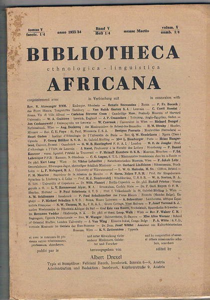 Bibliotheca ethnologica - linguistica africana. Tomus V° fasc. 1-4 anno 1933-34. Testo in lingua tedesca.