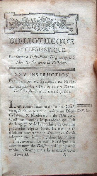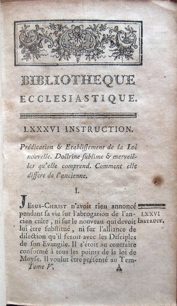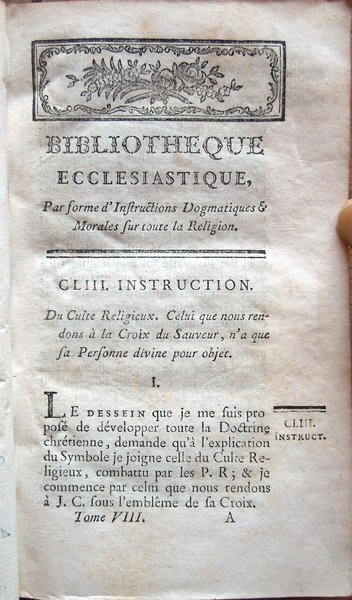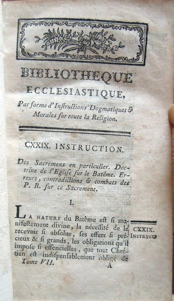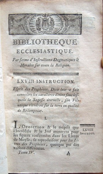Bibliotheque ecclesiastique, par forme d'instructions dogmatiques et morales sur toute la religion, par M. l'Abbé Guyon, Pensionné du Clergé de France. Tome premier [-huitième]