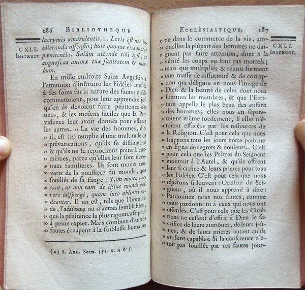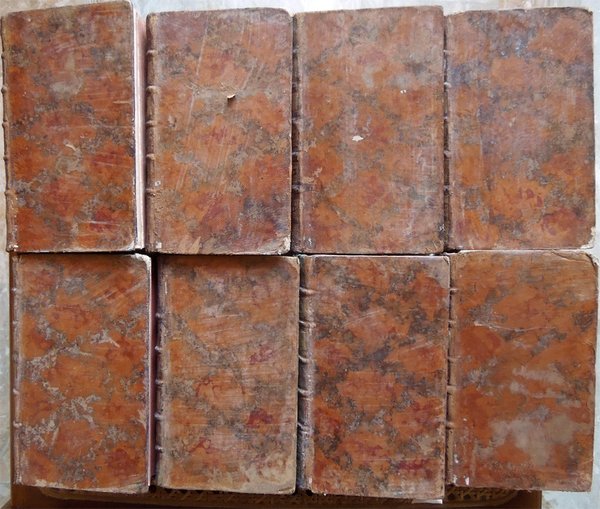 Otto volumi in-16° (16,5 x 9,5 cm), pp. XLVIII, 511 [i. e. 513], (1); (4), 456, (2); (4), 380, (2); (4), 361, (1); (4), 504; (4), 384; (4), 514, (1); (4), 471, (1), legatura coeva in piena pelle, con titoli su tassello e fregi in oro al dorso a cinque nervi e sei scomparti. Normali segni d'uso e del tempo alla legatura, con qualche piccola abrasione ai piatti e ai labbri. Tagli rossi. Segnacolo in raso. Al recto della seconda carta di guardia, bianca, timbro ovale di biblioteca e numero, forse di collocazione, scritto a mano; ai tomi quarto e quinto, il timbro è all'occhietto anziché alla guardia. Timbro ovale, più antico, della medesima biblioteca, al frontespizio di ciascun tomo. Al primo tomo, errore nella numerazione delle pagine, con ripetizione dei numeri 505-506, con testo che rimane assolutamente corretto e completo; alle carte con le pagine 151-152 e 365-366, nel margine bianco esterno, lontano dal testo, un piccolo strappo, rimarginato con carta giapponese. Al tomo secondo, una carta bianca tra le pagine 422-423, ma testo completo; le pagine dalla 145 alla 168 presentano una leggera brunitura, dovuta al tipo di carta. Al tomo terzo, una carta bianca tra le pagine 342-343, ma testo completo. Ai tomi quarto e quinto, nulla da segnalare. Al tomo sesto, alla carta con le pagine 84-84, reintegrato l'angolo inferiore esterno, lontano dal testo. Al tomo settimo, alle carte ospitanti le pagine 193-194 e 387-388, reintegrata mancanza nell'angolo inferiore esterno, mancanza che non interessa il testo. Al tomo ottavo, piccola scritta coeva, a inchiostro, nell'angolo superiore esterno del recto della seconda carta di guardia posteriore; alla carta con le pagine 25-26, reintegrata piccola mancanza nell'angolo inferiore esterno, molto lontano dal testo. Per il resto esemplare ben conservato. Opera rara, completa.