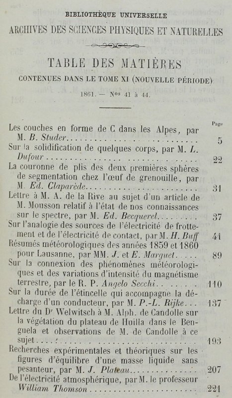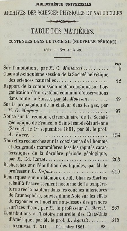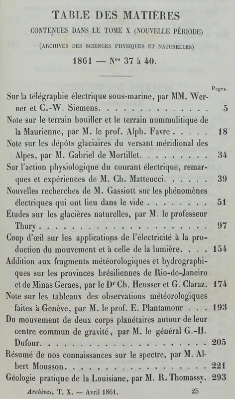 BIBLIOTHEQUE UNIVERSELLE - Revue Suisse et Etrangère. ARCHIVES DES SCIENCES PHYSIQUES ET NATURELLES. Nouvelle Période - Tomes 10+11+12