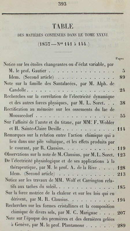 BIBLIOTHEQUE UNIVERSELLE DE GENEVE. ARCHIVES DES SCIENCES PHYSIQUES ET NATURELLES. Tome 36