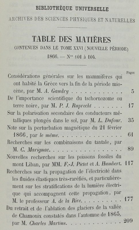 BIBLIOTHEQUE UNIVERSELLE ET REVUE SUISSE. ARCHIVES DES SCIENCES PHYSIQUES ET NATURELLES. Nouvelle Période - Tome 26