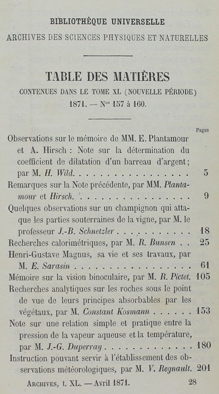 BIBLIOTHEQUE UNIVERSELLE ET REVUE SUISSE. ARCHIVES DES SCIENCES PHYSIQUES ET NATURELLES. Nouvelle Période - Tome 40