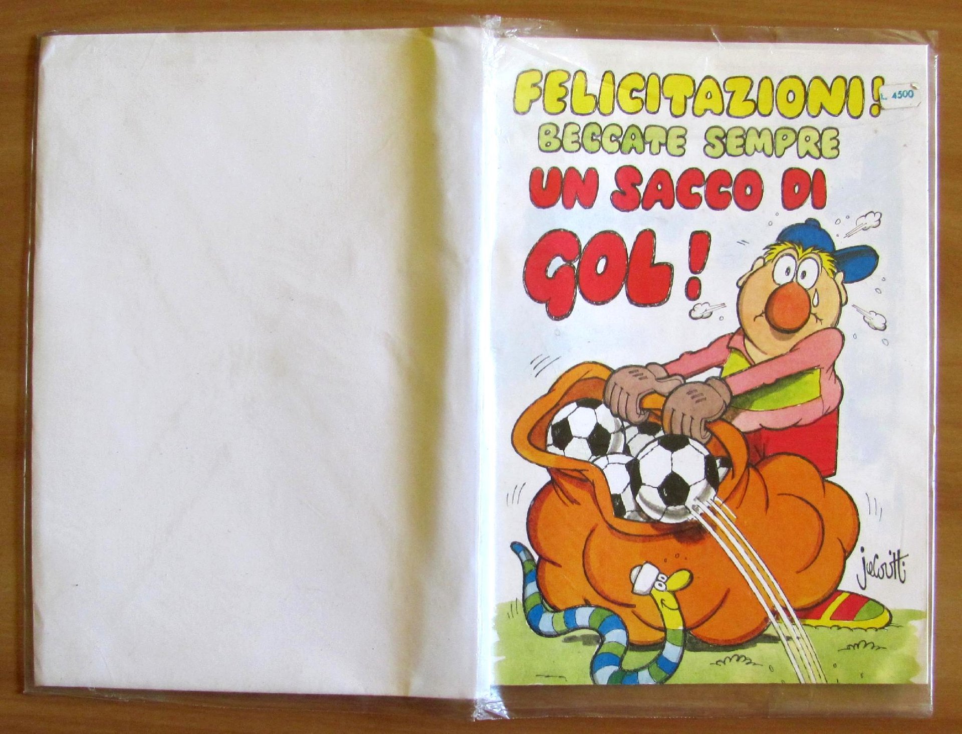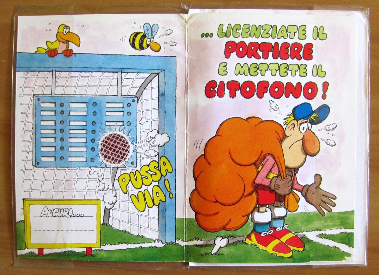 Biglietto Auguri Serie Jacovitti - Sport - Calcio - Mai Usato. Editore Peruzzo, 1990. Cartoncino apribile con Busta bianca inserito in plastica trasparente editoriale. Chiuso 15,5x22,5 - Aperto 30x22. Stato di Nuovo. ,