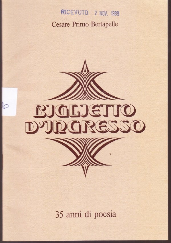 24 pagine, spillato. VOLUME IN BUONE CONDIZIONI, TIMBRI IN PRIMA PAGINA E IN COPERTINA, DEDICA DELL'AUTORE, ETICHETTA SUL DORSO. Poesie