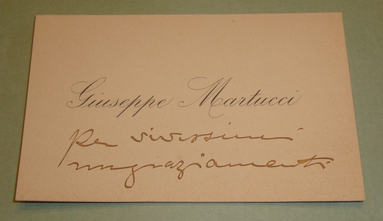 MARTUCCI Giuseppe. Compositore, a lungo Direttore del Conservatorio di San Pietro a Maiella a Napoli. 1856 - 1909. Biglietto da visita autografo con espressioni di ringraziamento.