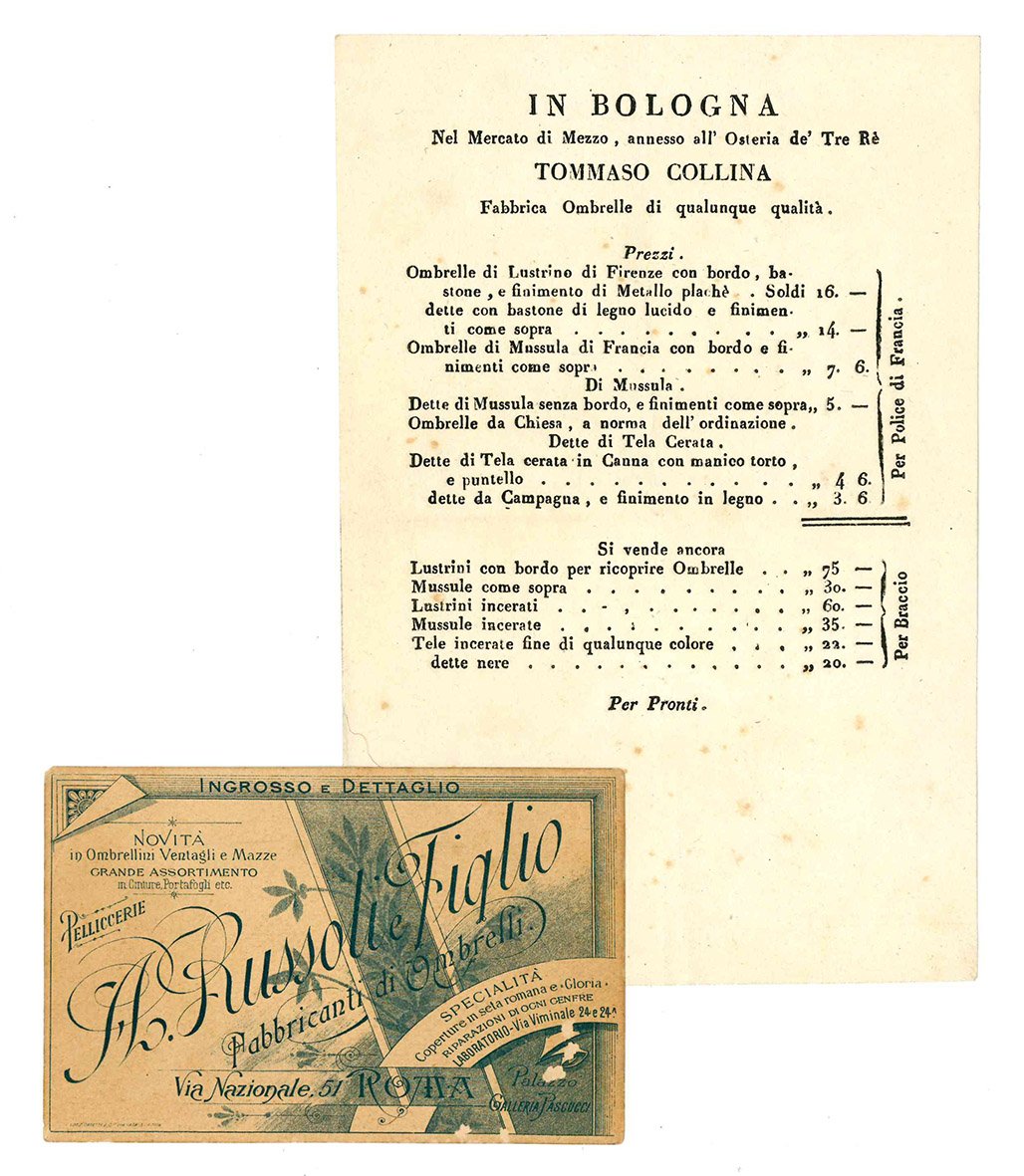 Biglietto da visita e catalogo di fabbriche di ombrelli.