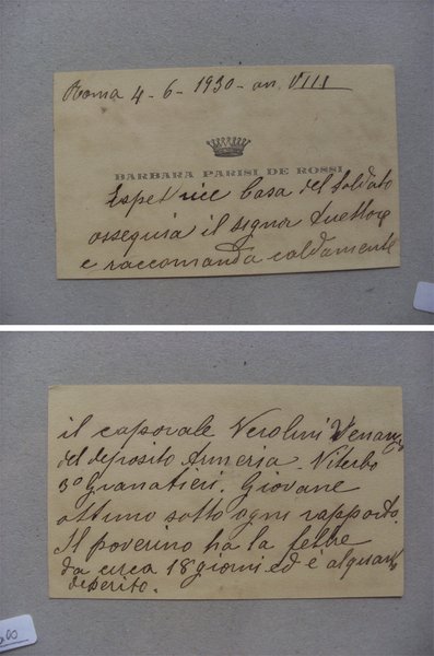 *Biglietto da visita manoscritto BARBARA PARISI DE ROSSI Roma 1930
