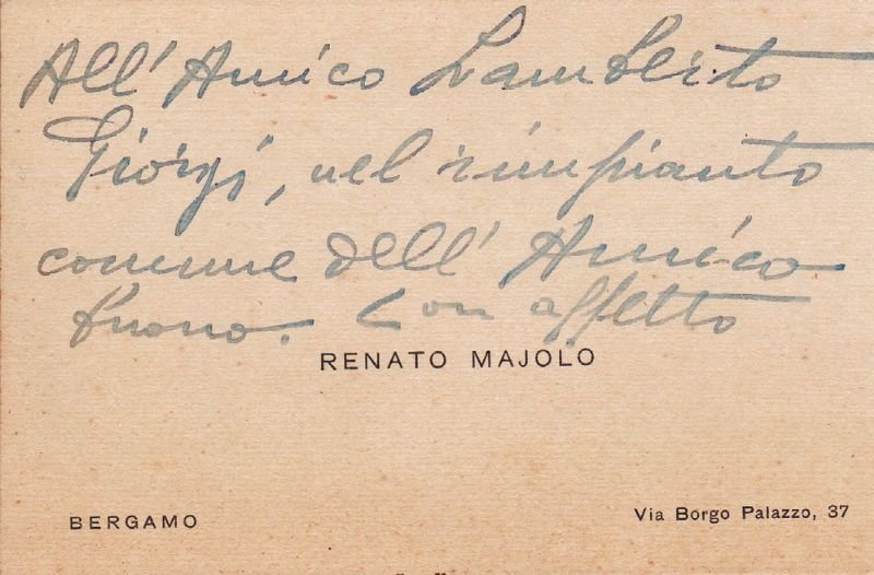 Biglietto autografo non firmato, inviato al giornalista Lamberto Giorgi 'nel rimpianto comune dell'Amico buono.'
