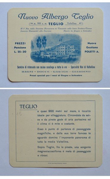 Biglietto pubblicitario Nuovo Albergo Teglio - Valtellina