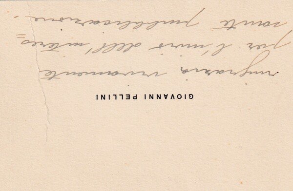 *Biglietto ringraziamenti GIOVANNI PELLINI (scultore)
