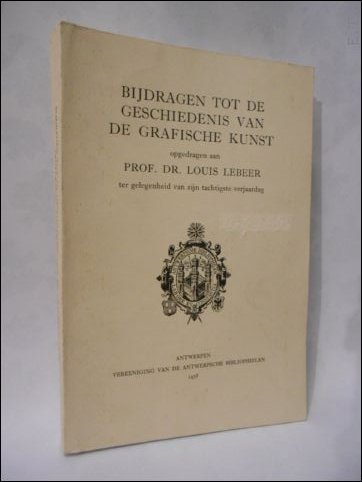 Gebrocheerd, originele uitgeversomslag, 24x16cm, 466pp, geillustreerd z/w. Bijdragen tot de Geschiedenis van de Grafische Kunst Opgedgragen aan Prof. Dr. Louis Lebeer ter Gelegenheid van zijn Tachtigste Verjaardag. [Contributions a l'Histoire de l'Art Graphique Dediees au Prof. Dr. Louis Lebeer a l'Occasion de son Quatre-Vingtieme Anniversaire.]
