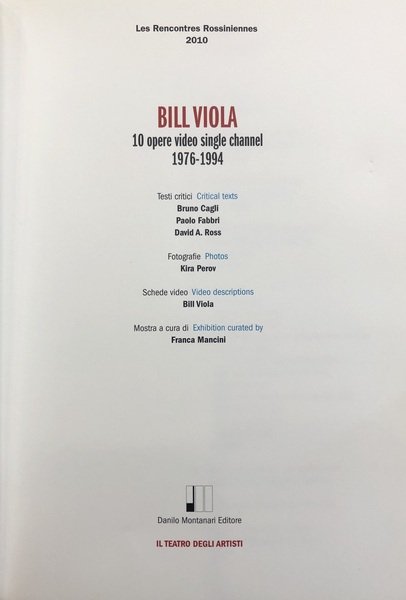 BILL VIOLA. 10 opere video single channel 1976-1994