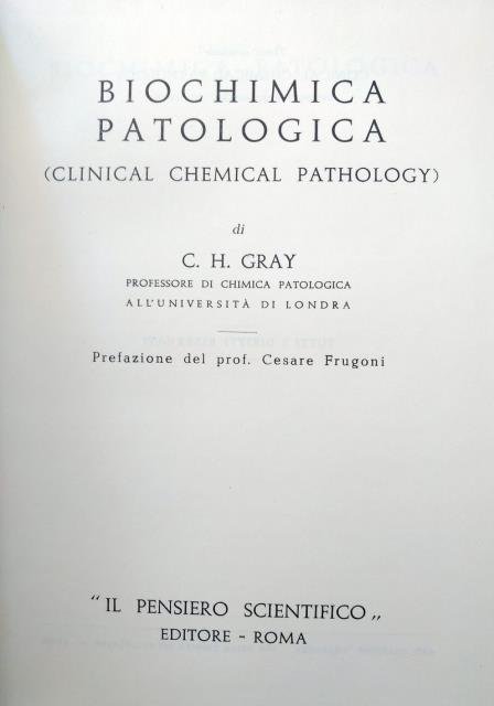 «Il Pensiero Scientifico», Roma, 1955. Prefazione del Prof. Cesare Frugoni. In 8vo, pp. 200 (con Indice), leg. in t. tela rossa cerata con titolo argento al dorso. Lungo e interessante il capitolo sulla calcificazione. L'Autore, professore di chimica patologica all'Università di Londra. Manca la sovrac. ma ottima conservazione.