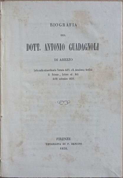 Biografia del dott. Antonio Guadagnoli di Arezzo.