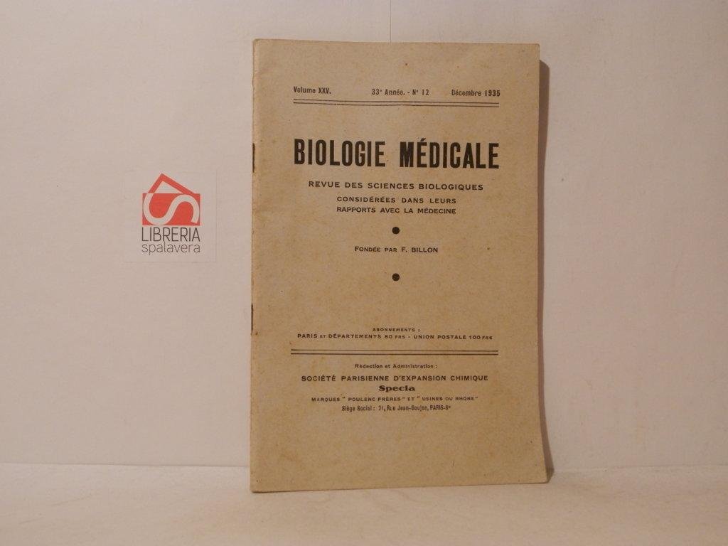 Biologie medicale revue mensuelle des sciences biologiques considerees dans leur rapports avec la medecine. Vol. XXV, 33 annee, n. 12, Decembre 1935