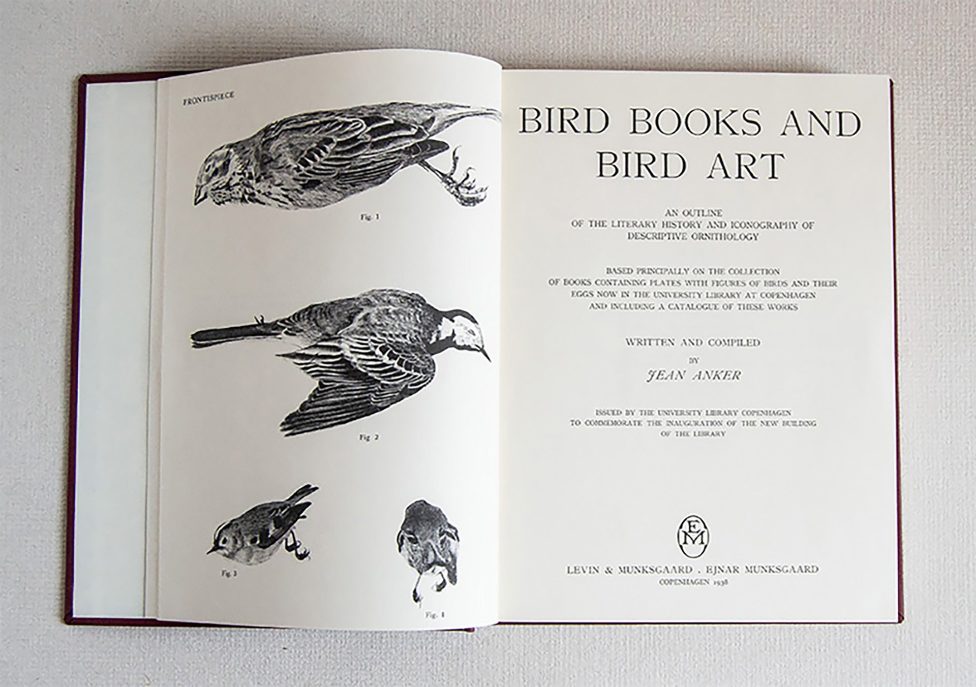 Un eccellente resoconto dell'argomento organizzato in due parti. Parte 1: un quadro della storia letteraria e dell'iconografia dell'ornitologia descrrittiva; Parte 2: un catalogo delle collezioni di libri contenenti tavole con figure di uccelli e delle loro uova, ora nella Bibliotheca Universitaria di Copenhagen. Con accurate collazioni e commenti per 548 importanti libri di ornitologia.