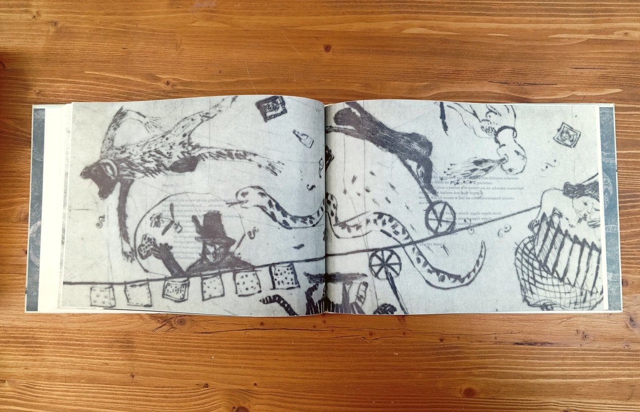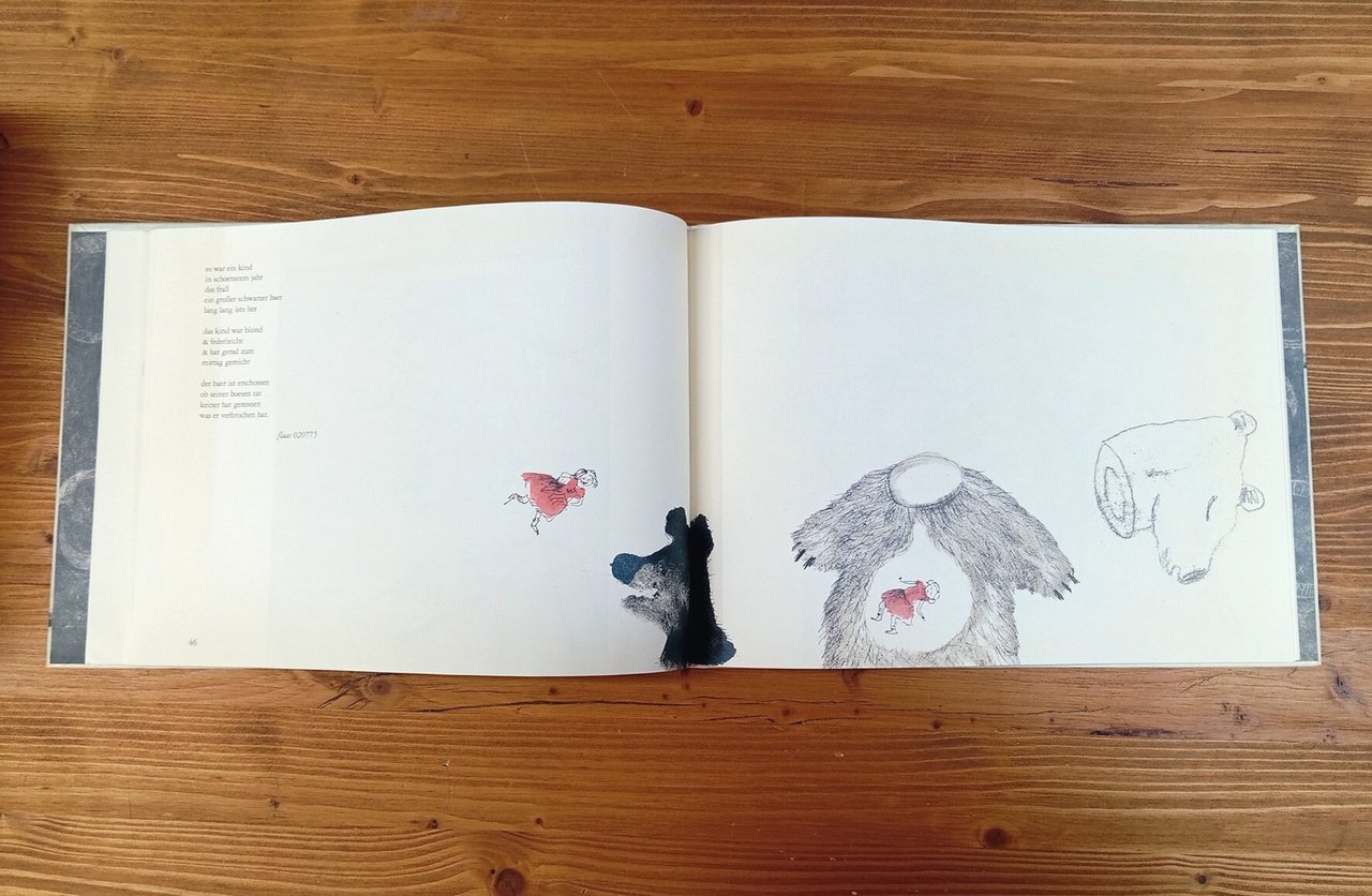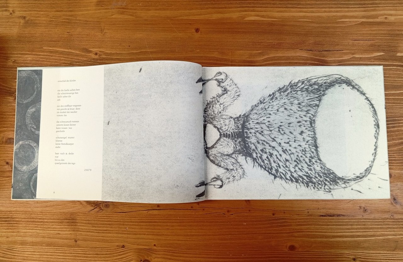 Edizione originale in lingua tedesca / Original German language edition - Volume cartonato in formato album, 95 pagine illustrate a colori da Linda Wolfsgruber su testi di Norbert C. Kaser. Alcune carte sono stampate su velina opaca che crea suggestivi effetti di semi-trasparenza. Esemplare in ottime condizioni di un volume singolare e non comune -- Vincitrice negli anni di numerosi premi, tra cui l'Hans Christian Andersen Award nel 2020, in questo volume Linda Wolfsgruber illustra le poesie di Norbert C. Kaser in maniera altrettanto poetica, con un approccio completamente diverso rispetto ai suoi precedenti lavori di illustrazione. Le molteplici tecniche utilizzate dall'artista si adattano in maniera originale ed eclettica ai testi: le poesie di Kaser, già di per sé suggestive, sono infuse di una leggerezza in certo modo astratta, immergendo il lettore in un universo di favola grottesco e dalle tinte chiaroscurali.