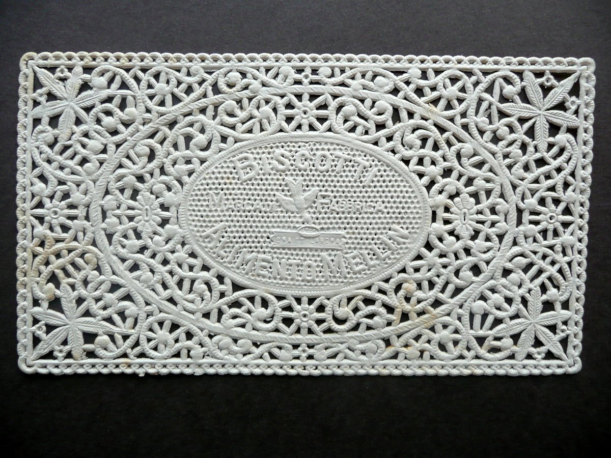 Cartoncino pubblicitario, Biscotti Alimento Mellin - Cartoncino pubblicitario traforato S. d. (primi anni del Novecento circa); cartoncino pubblicitario traforato, con bei fregi e fantasie in rilievo. Cm 7,5x13,5. Condizioni di conservazione Esemplare in buone condizioni con minime tracce di utilizzo; poche piccole lievissime bruniture. SC03.D11131 N