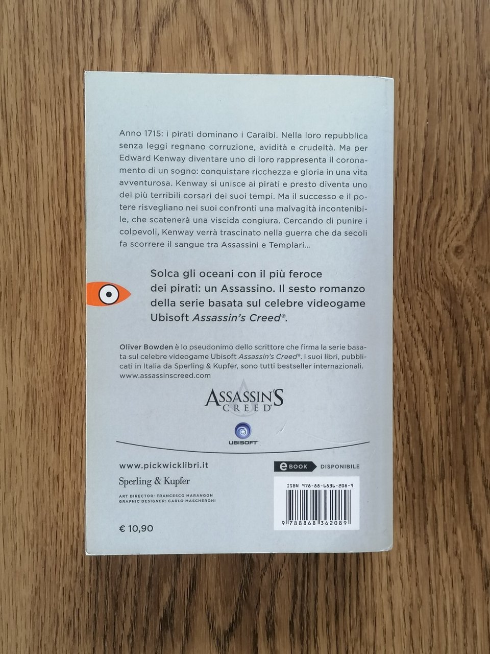Assassin's Creed Black Flag di Oliver BowdenEditore: Sperling & Kupfer Collana: Pickwick Traduttore: Dobner T. Data di Pubblicazione: 28 ottobre 2014 EAN: 9788868362089 ISBN: 8868362082 Pagine: 471 Formato: brossura Argomento: Fantascienza storica Descrizione All'inizio del Settecento, nell'età dell'oro della pirateria, il Nuovo Mondo è una meta irresistibile per tutti. Per Edward Kenway - l'esuberante, giovane figlio di un mercante di lana che desidera con tutte le sue forze diventare molto ricco - rappresenta il coronamento di un sogno. Quello di conquistare la gloria in una vita avventurosa, solcando gli oceani su inaffondabili velieri. Il momento per andare incontro al suo destino, lasciandosi alle spalle un'esistenza troppo banale, arriva quando la tenuta della sua famiglia è attaccata da misteriosi nemici. Non passerà molto tempo prima che Kenway diventi uno dei più terribili corsari dei suoi tempi, una vera leggenda al pari del pirata Barbanera. Ma il successo, la fama e il potere risvegliano sempre avidità, ambizione e malvagità. Anche Kenway, allora, deve fare i conti con una viscida congiura ai suoi danni e, una volta ottenute le prove schiaccianti sui traditori che minacciano tutto ciò che gli è caro, non ha scelta. I colpevoli devono essere puniti. Per questo viene trascinato nella guerra che da secoli fa scorrere il sangue tra Assassini e Templari, e che potrebbe distruggere tutto ciò che i pirati hanno costruito. Condizioni del libro Buone condizioni, minimi segni d'uso