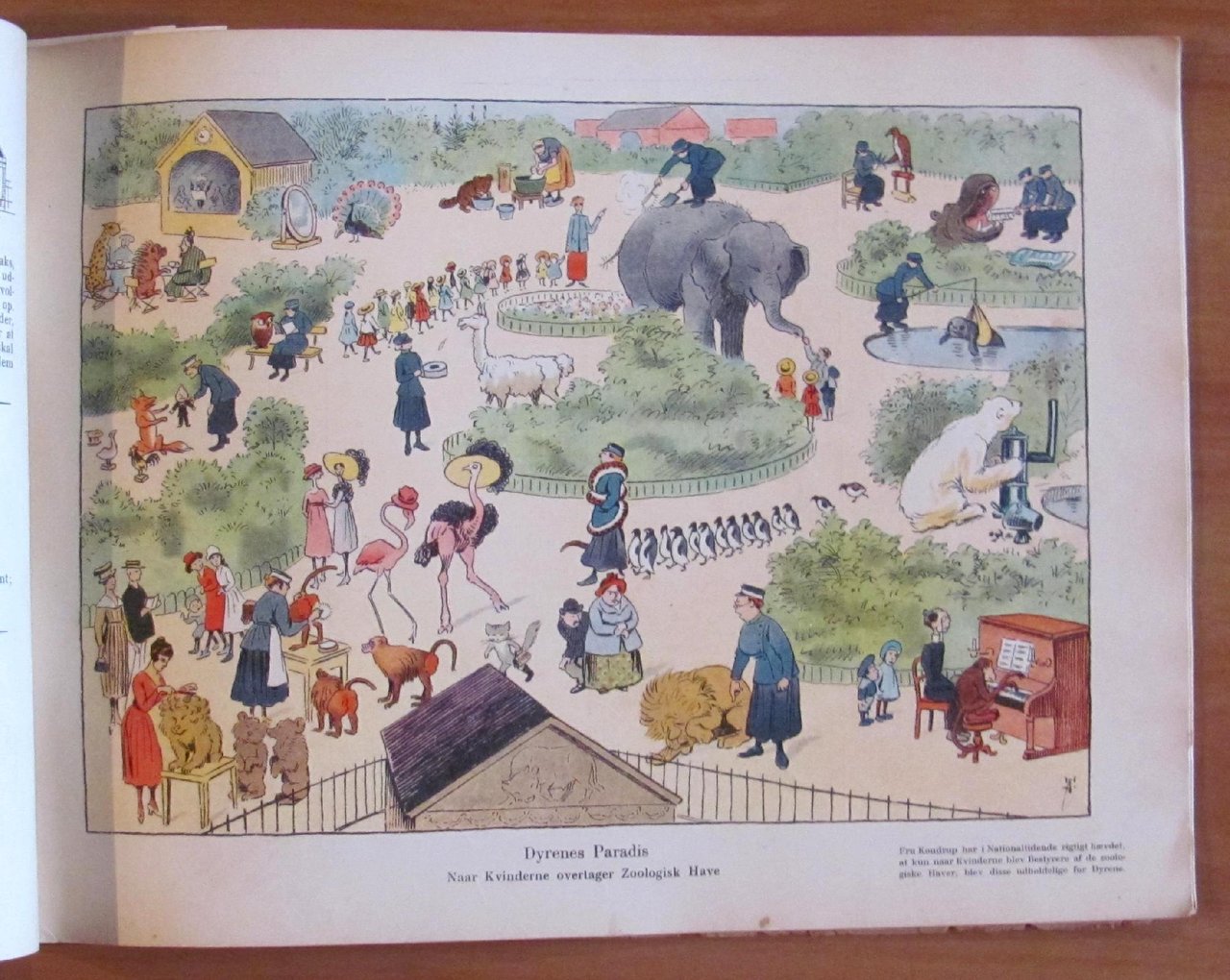 Illustrazioni in b/n e a colori a tutte le pagine, di cui molte a piena pagina, di tanti autori diversi tra i quali: Alfred Schmidt, Axel Thiess, Sven Brasch, Valdemar Moller ecc. Ed. Gyldendalske Boghandel - Copenaghen, 1919. Brossura editoriale spillata con vecchio scotch al dorso e taglietti marginali alla retrocopertina. 31,5x23,5; pp.50+VI pubblicitarie. Rara, Bu , Molto buono (Very Good)