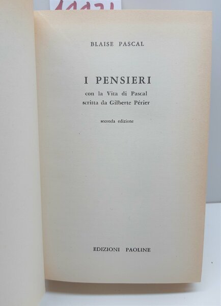 Blaise Pascal I pensieri con la vita di Pascal scritta da Gilberte Pierier 2° ed. Paoline 1963