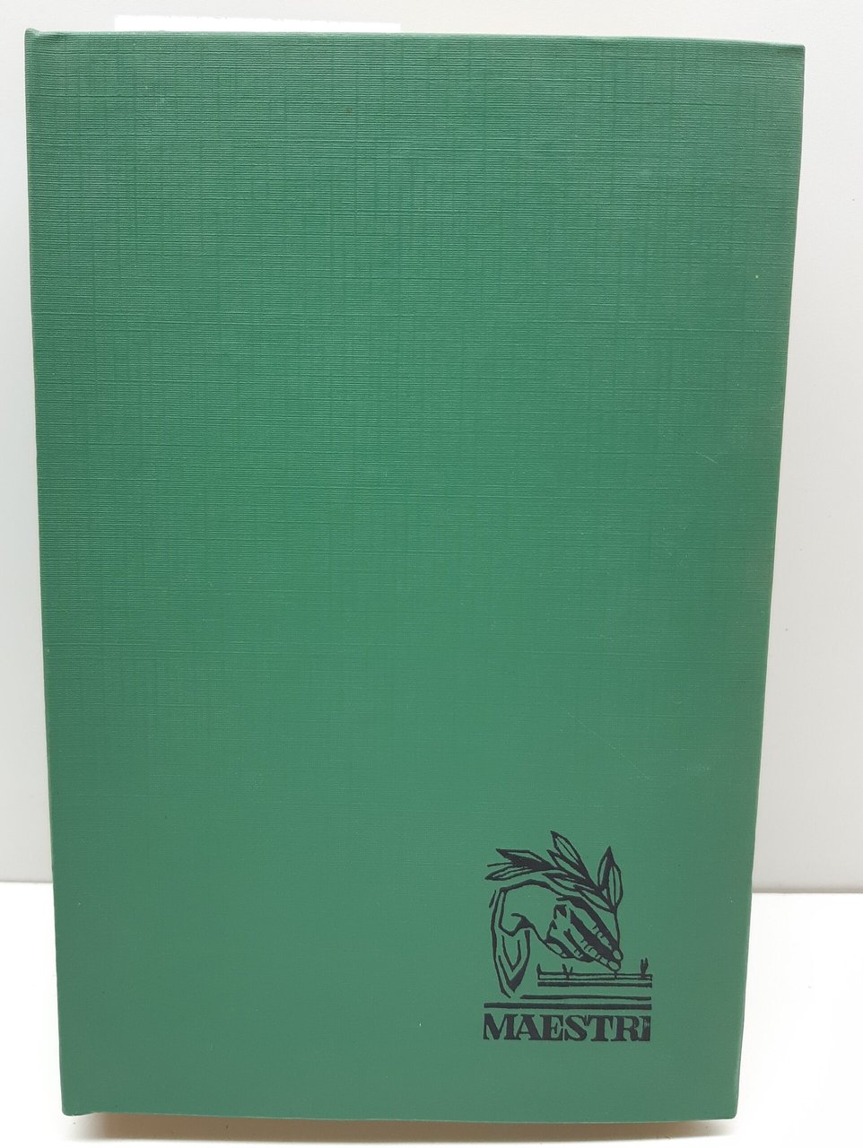 Legatura rigida editoriale in tela verde con fregio impresso al piatto anteriore, titoli in nero al dorso, legatura in buone condizioni lievi segni del tempo e alcuni lievissimi aloni, tagli bruniti con fioriture impolverati quelli superiori, interno in buono stato brunitura al margine esterno delle pagine, numero pagine 591 + indice dimensioni cm 17 x 11,5