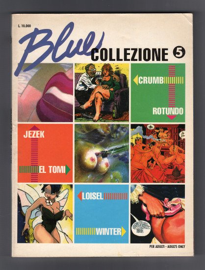 Brossura editoriale (cm 29x21,5). Il volume è composto da tre numeri di Blue: Febbraio Marzo Aprile 1992 ognuno di pag. 66. -- Famosa rivista di fumetti erotici.