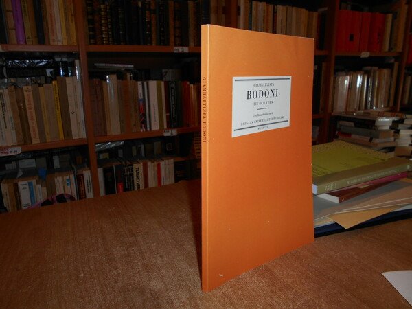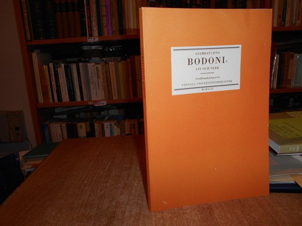 (BODONI) Giambattista Bodoni liv och verk Uppsala Universitetsbibliotek del 1992. In-8° grande, br. edit. 82, (3) pp. con numerosi facsimili n.t. In fine una grande tavola più volte ripiegata inserita nell' apposito spazio. Testo in tedesco. Come nuovo. Neg. lett. mod. mob. M.