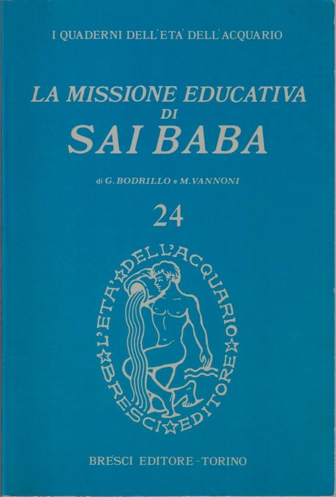 Germana Bodrillo, Myriam Vannoni, La missione educativa di Sai Baba, Edizioni L’Età dell’Aquario - Bresci Editore, Torino s.d., pp. 111, ill. b.n., cm 21, br. ed. Collana I quaderni dell’età dell’Acquario, n. 24. Timbro di libreria all’ultima carta. Firma d’appartenenza alla seconda carta. Ben conservato.