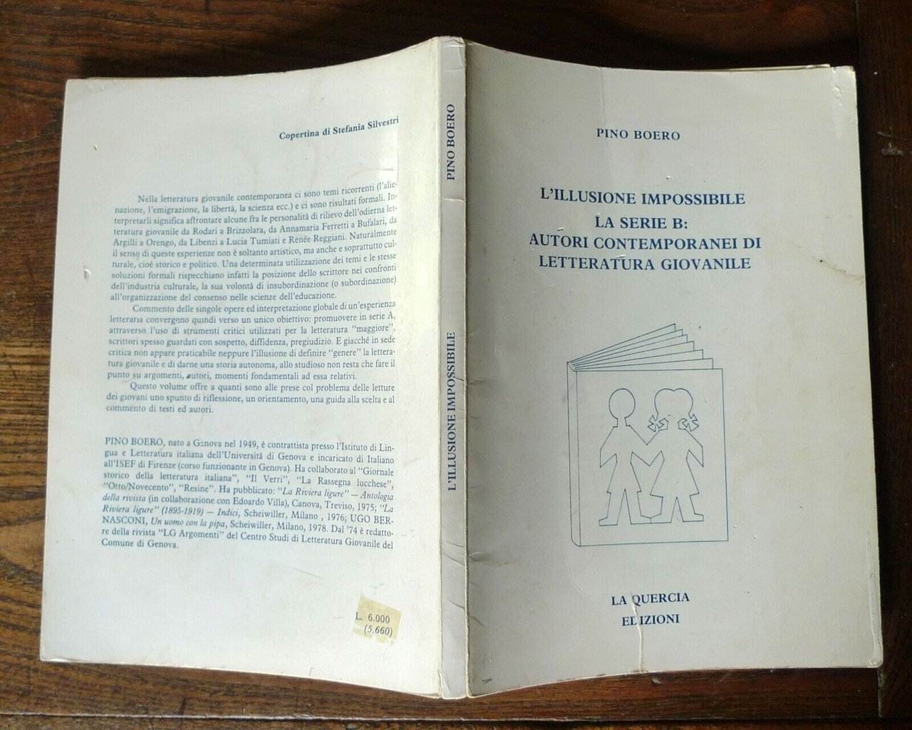 Pino Boero,L'ILLUSIONE IMPOSSIBILE.LA SERIE B:AUTORI CONTEMPORANEI DI LETTERATURA GIOVANILE.La Quercia Edizioni, Genova 1980,brossura, 24x17 cm., pp.156,peso: g.350