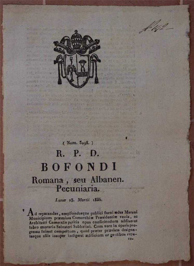 BOFONDI ROMANA SEU ALBANEN PECUNIARIA LUNOE 23 MARTII 1835