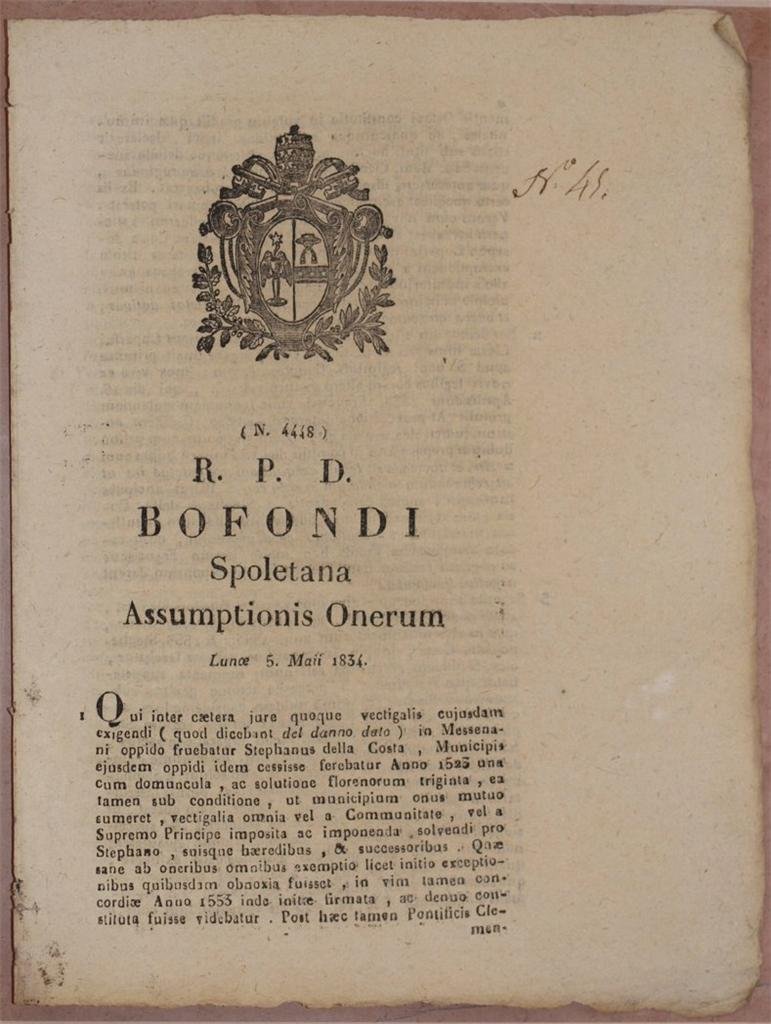 BOFONDI SPOLETANA ASSUMPTIONE ONERUM LUNOE 5 MAII 1834