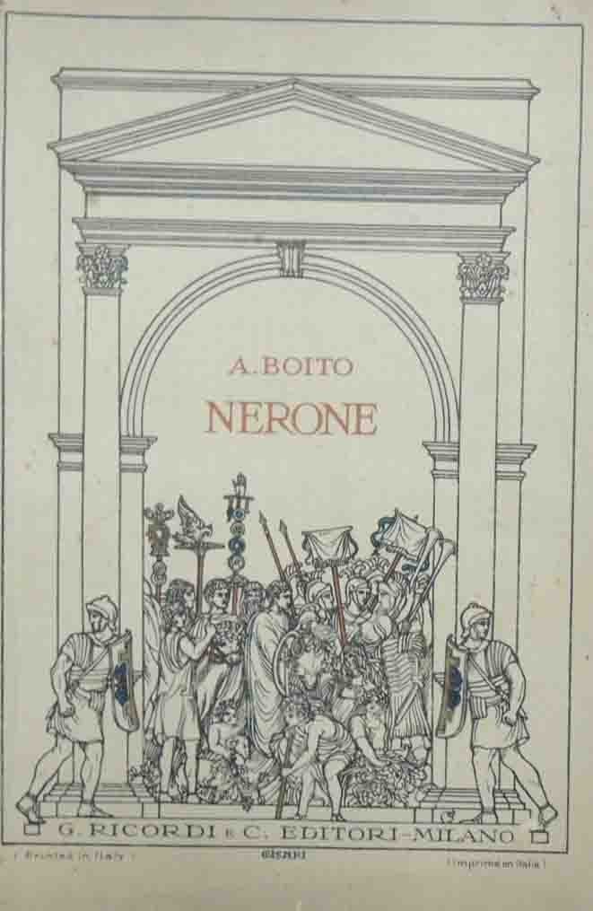 Arrigo Boito, Nerone. Tragedia in quattro atti, G. Ricordi e C. Editori, Milano 1924, pp. 88, cm 22, br. ed. Tracce d’uso, rinforzo in carta al dorso, minime fioriture, lievissima brunitura della carta, ma volume ancora in condizioni accettabili.